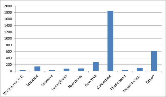 The graph below appears in the Final EIS showing the state of origin of all comments. Do people in Connecticut really care more than all others, or were they just by chance the only communities informed?