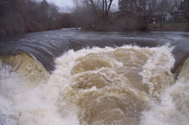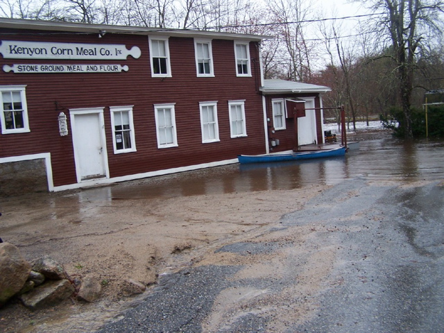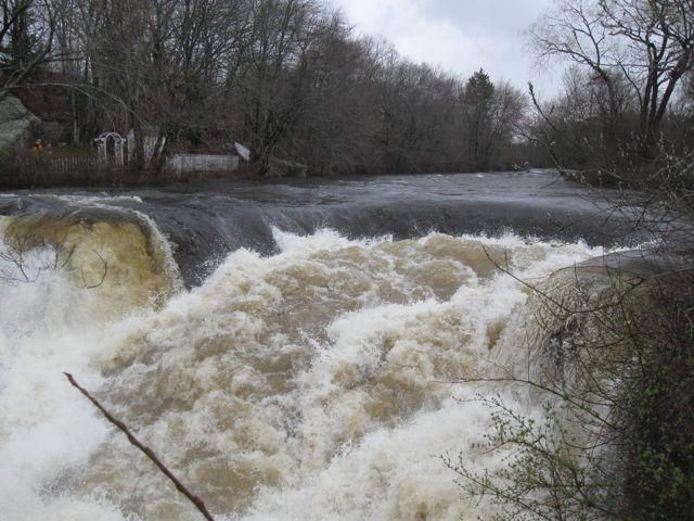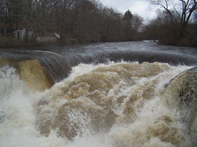 Wetlands absorbed the rain at first and then spilled over flood plains. The Pawcatuck River rose and Shannock Falls impressed all those who ventured out to see and hear the pounding water.